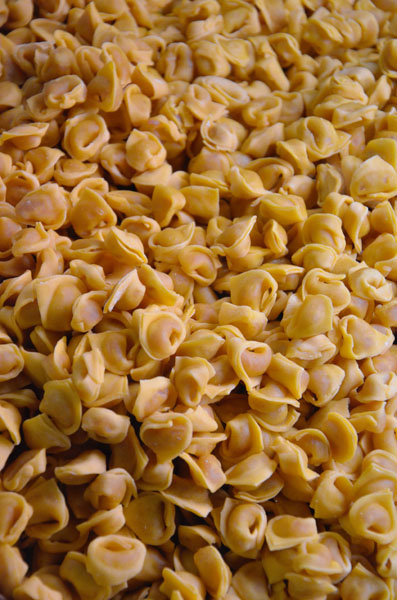 We begin near Piazza Maggiore, at one of Bologna’s finest bakeries, open since 1880. Under high frescoed ceilings, saleswomen in crisp white aprons bustle about arranging fresh pillows of pasta into rows behind glass display cases.