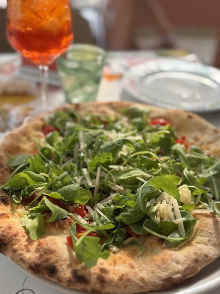 Enjoy Amalfi Coast food and wine capturing the essence of the Mediterranean diet. Start with fresh seafood caught daily by the local fishermen – there’s sea bass, clams, calamari, mussels and shrimp from the Tyrrhenian Sea. From the garden – there’s lemons, persimmons and San Marzano tomatoes. Extra virgin olive oil is a staple here and is used abundantly in cooking. Beautiful Mediterranean basil, rosemary, and sage grow everywhere and are used in local cooking. Slice into a creamy ball of mozzarella, the protagonist in the famous Caprese salad, layered between sliced tomato. A true Caprese is drizzled with extra virgin olive oil and garnished with fresh basil and sea salt. Neapolitan desserts, each one better than the next, wow – from torta Caprese, a flourless chocolate cake, semifreddo, a soft gelato scented with peach and mint, to delizia a limone, a traditional cake filled with lemon cream.