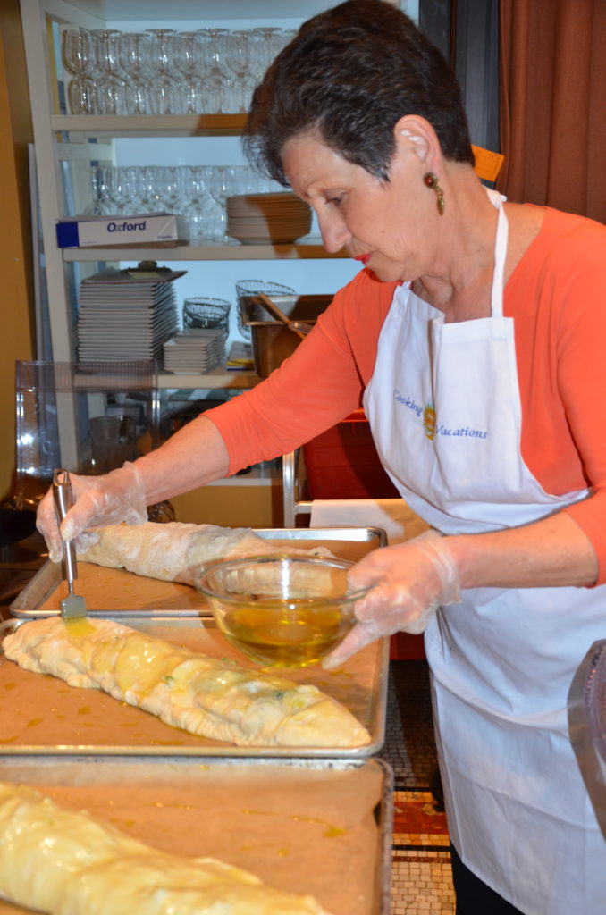 Let’s start with antipasto! When in season, we’ll prepare fiori di zucca ripieni – stuffed squash flowers or zucchini oreganata – thinly sliced baked squash garnished with breadcrumbs, or stuffed red peppers with Italian herbs, involtini di melanzane, stuffed rolled eggplant, or polpettini di melanzane, eggplant bites – to name a few. You’ll learn the art of rolling out gnocchi, stuffing ravioli Capresi and preparing authentic risotto.