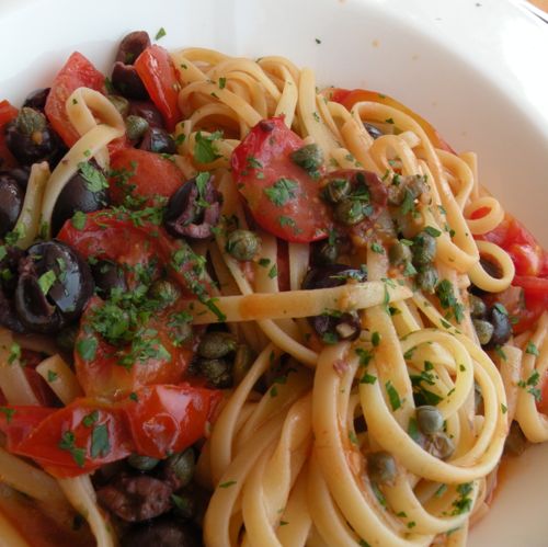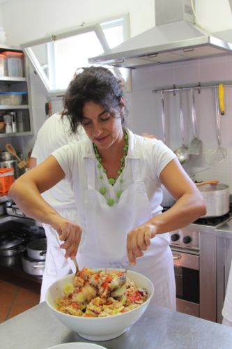 After each cooking class, everyone enjoys lunch or dinner with the food that was prepared in class with local white or red wine.