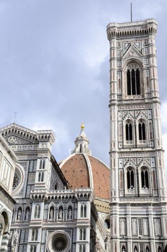 The Duomo: The Cathedral of Santa Maria del Fiore crowns the Florentine skyline. The building is located north of the Piazza della Signoria and was first constructed by Arnolfo di Cambio in 1296. Numerous local artists continued to work on it during the following century, and the painter Giotto designed its sturdy bell tower in 1334. The Duomo’s octagonal cupola (1420-36) built by Filippo Brunelleschi, master architect and sculptor, dominates. Although the Cathedral was first constructed by Arnolfo di Cambio in 1296, Florentine painters and sculptors decided the Gothic style should no longer be used and they introduced a Roman style with an octagonal dome spanning 42 meters to be built at the east end of the nave. Then, in 1415, Filippo Brunelleschi, a goldsmith and sculptor, prepared a design for the dome but the dome was not built until the early 15th century. He daringly proposed to construct the dome without the aid of formwork, which had been absolutely necessary in all previous Roman and Gothic construction. He built a 1:12 model of the dome in brick to demonstrate his method, and the design was accepted then built under his supervision from 1420 to 1436. Brunelleschi was hailed as the man who “renewed Roman masonry work.” The Duomo was established as the paragon of a new form. Opposite the Cathedral stands the Baptistery and dates to the 11th century. The third pair of the structure’s doors were made by Lorenzo Ghiberti, and were of such rare beauty that Michelangelo christened them the Gates of Paradise. - The Accademia Museum: The Accademia Museum is celebrated museum and home to Giovanni da Milano’s Pieta (fourteenth century), the Annunciation by Lorenzo Monaco (fifteenth century), and the beautiful front, called Cassone Adimari, displays a sumptuous marriage procession (c. 1450) along with the Madonna of the Sea attributed to Botticelli (1445-1510). A recent re-arrangement and restoration of the rooms have given more space for the display of paintings from the fourteenth to the seventeenth centuries, plaster models of Lorenzo Bartolini and Luigi Pampaloni, famous Italian sculptors of the nineteenth century are also on display along with Michelangelo’s David.