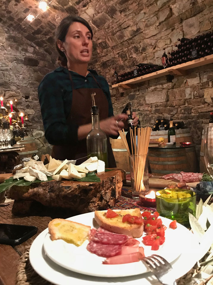 - In the evening, enjoy your Chef’s Welcome Dinner featuring a full course dinner with Tuscan Fare, an antipasto, fresh pasta with sauce, main course and dessert with wine tasting.